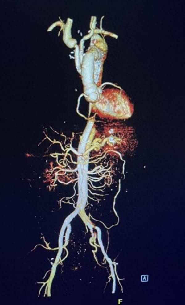 A型主动脉夹层发病急、进展快、死亡率极高,而该患者还合并颈动脉、髂总动脉、下肢动脉等多处血管闭塞,同时伴随截瘫、肝肾功能不全、肺大疱、脑梗死等多种合并症,全身多器官因灌注不良濒临衰竭,手术治疗难度极大、风险极高,术后极有可能发生截肢、多器官功能衰竭等严重并发症,对医疗团队的技术水平和综合救治能力提出了极高要求。